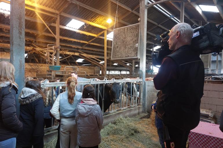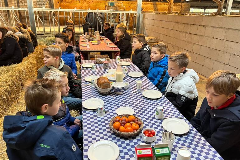 Lange tafels bedekt met geruite tafelkleden en hooibalen als banken maakten vorige week van de voergang op het melkveebedrijf van Hanneke Verberne geen voerplek voor de koeien, maar voor kinderen van verschillende basisscholen. Klassen van drie scholen uit de regio startten tijdens de ontbijtweek van het Nationale Schoolontbijt hun ochtend tussen de koeien. Omroep Brabant legde het vast.