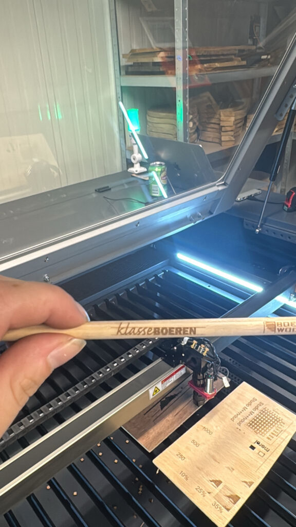 We zijn bijna door onze voorraad boekenleggers heen en het werd tijd om een ander leuk aandenken aan een leuke boerderijles te bedenken. Het is een potlood geworden!